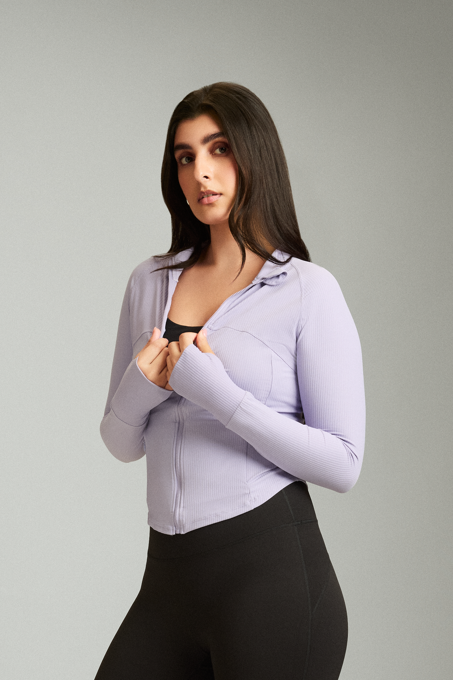 We believe you shouldn't have to choose between a jacket that works and a jacket that flatters. We engineered the OnTheGo Jacket to deliver both. By utilizing a structured, ribbed fabric we created a silhouette that sculpts and defines your form instead of hiding it. We integrated concealed zip pockets that disappear when not in use, ensuring you get maximum utility with zero visual clutter.